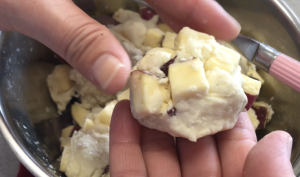 ③②に水を入れて、全体に水をいきわたらせるようにこねる。