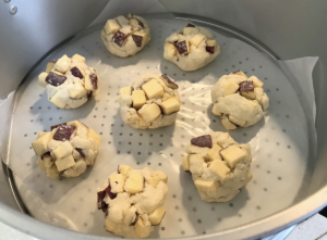 ⑦クッキングシートに並べ、蒸気が上がった蒸し器で15分ほど蒸す。