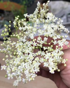 エルダーフラワーにはデトックス効果、リラックス効果、風邪やインフルエンザ、花粉症などのアレルギ―などの症状を緩和すると聞いている。